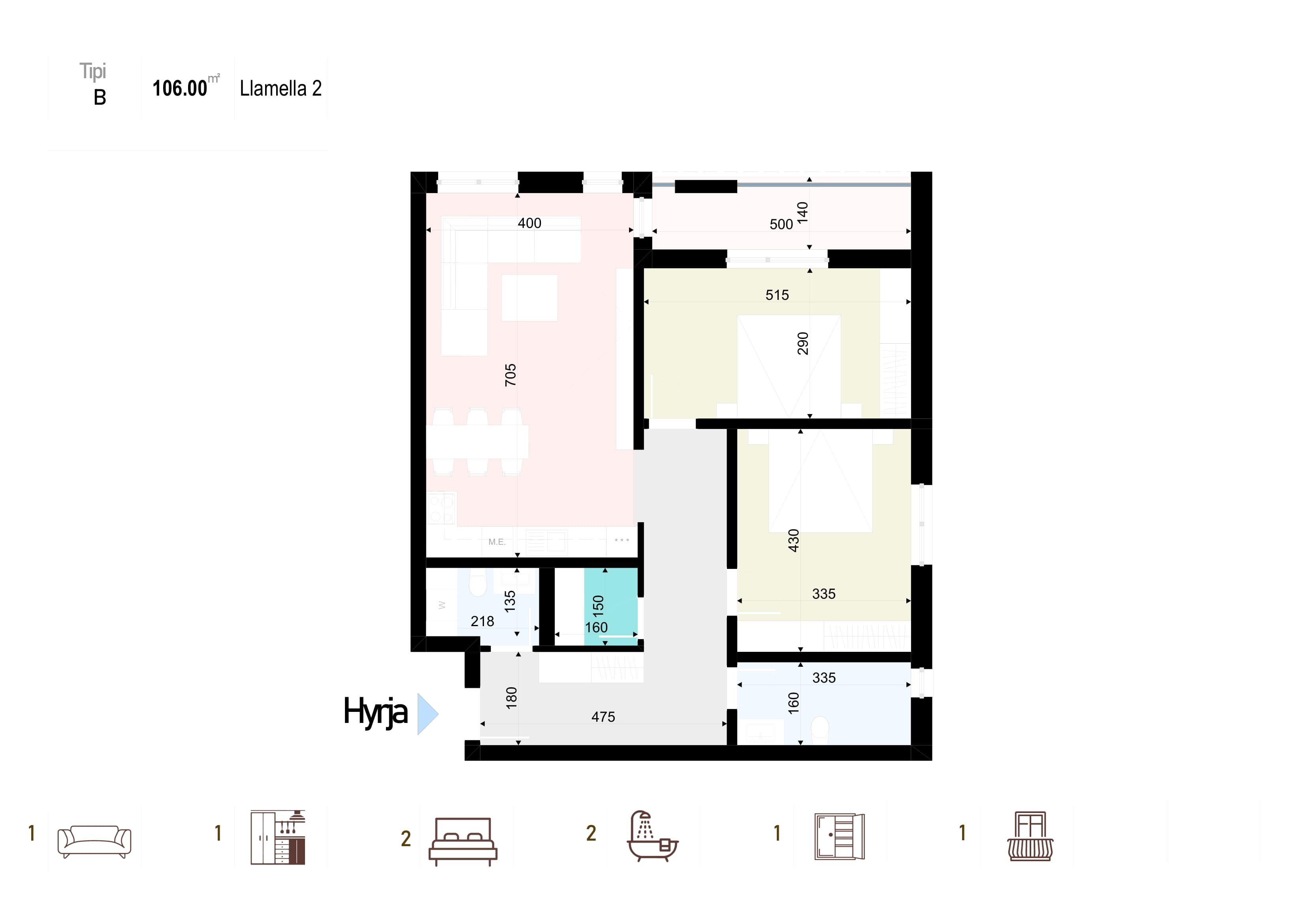 Lamela 2 – Tipi B 106.00 m2