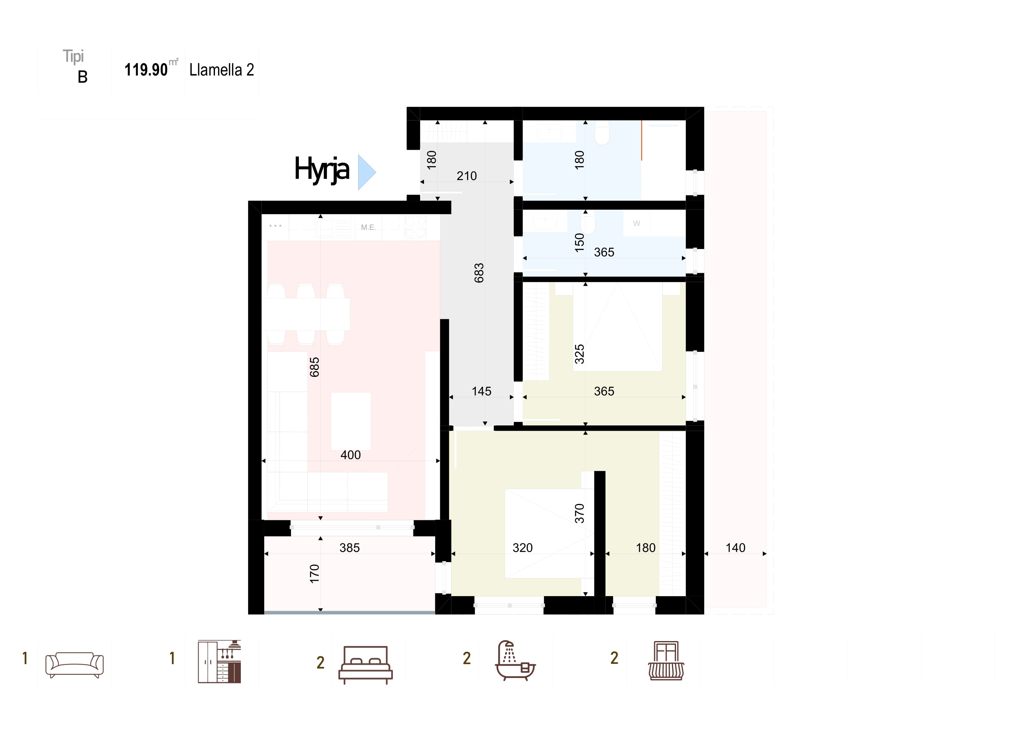 Lamela 2 – Tipi B 106.00 m2 – V2